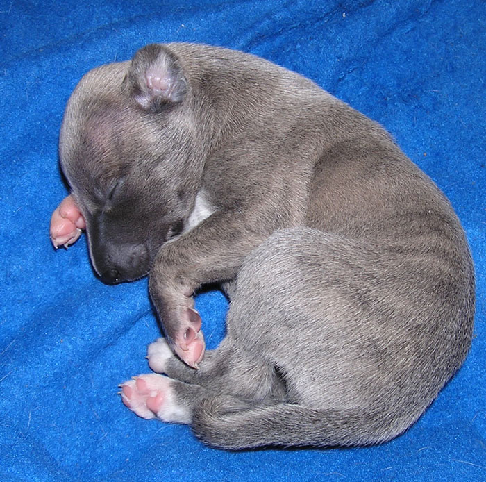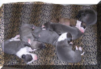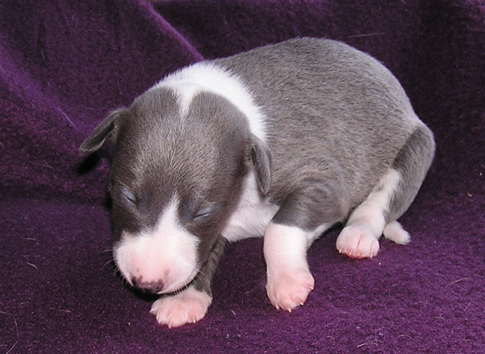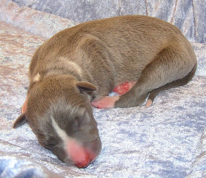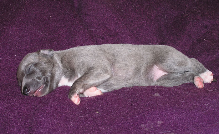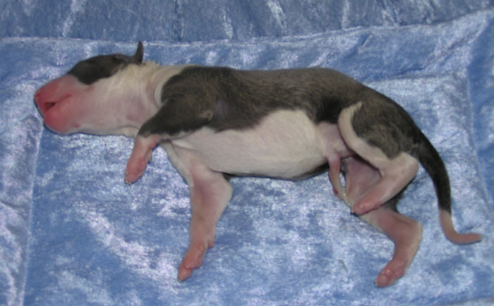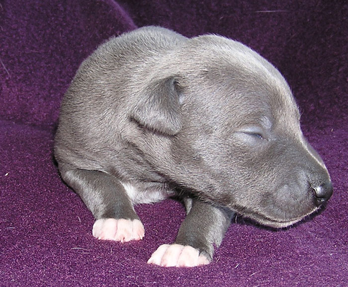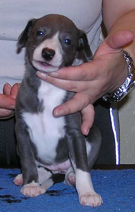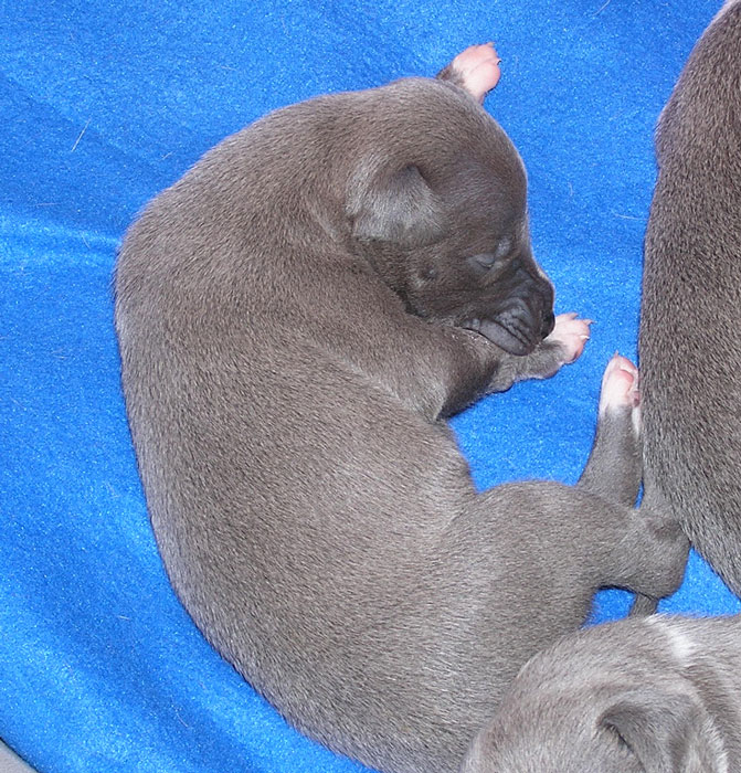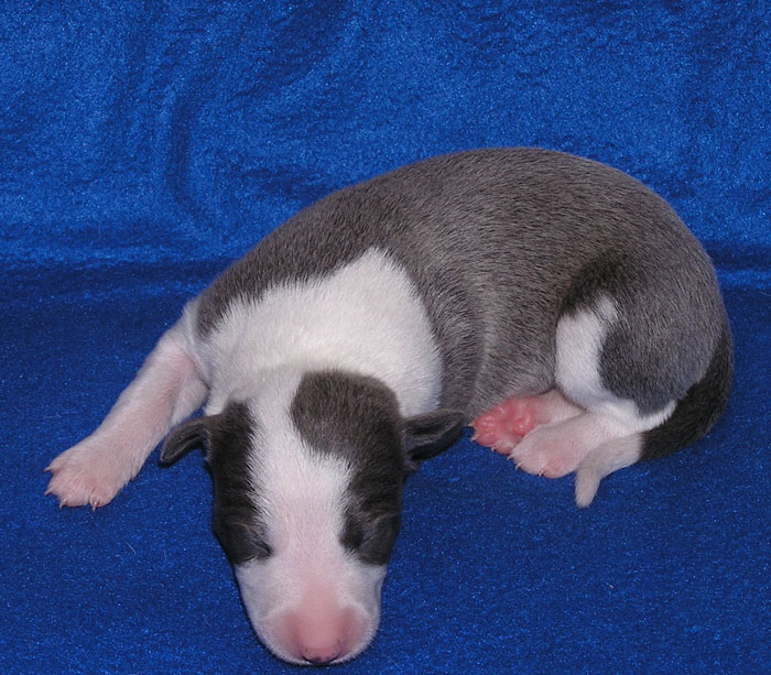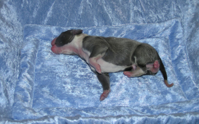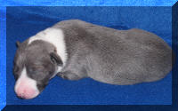 une femelle bleue à panachures blanches étendues 350g
