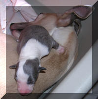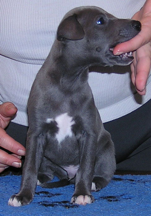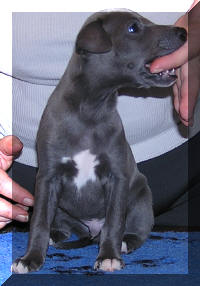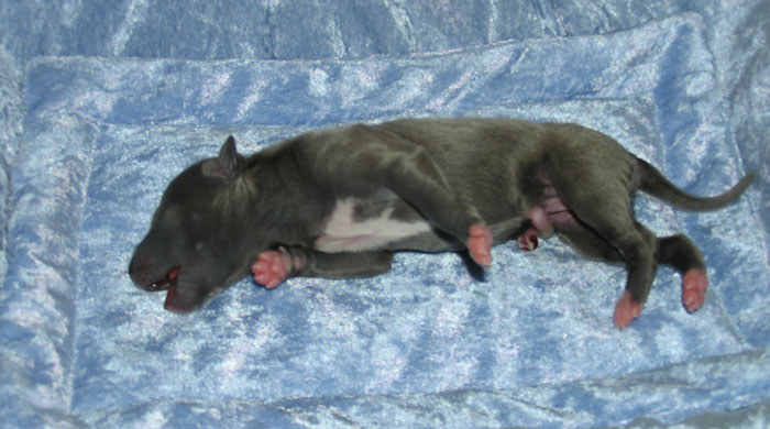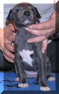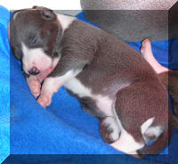 Femelle bleue avec petite tâche blanche à la poitrine |