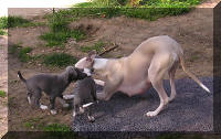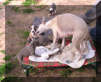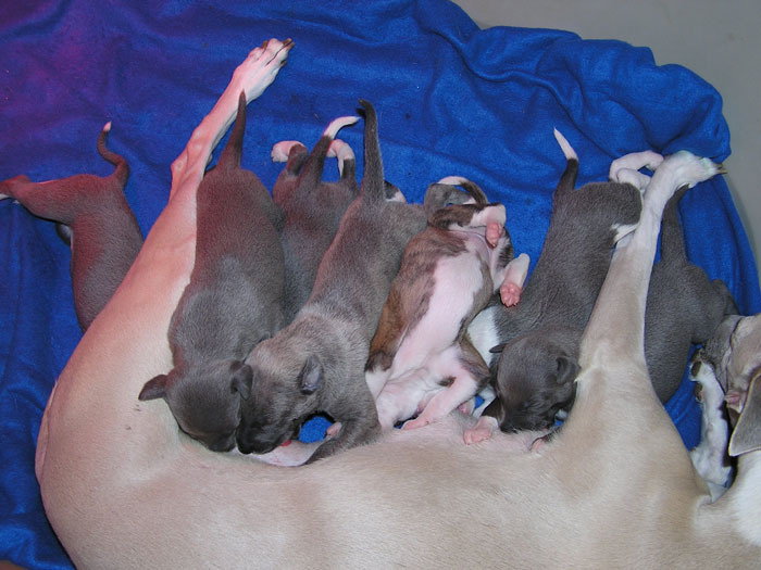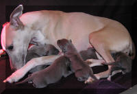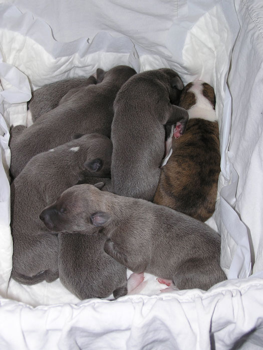 Il y avait 5 femelles, bleues sauf une fauve bringée noir et une