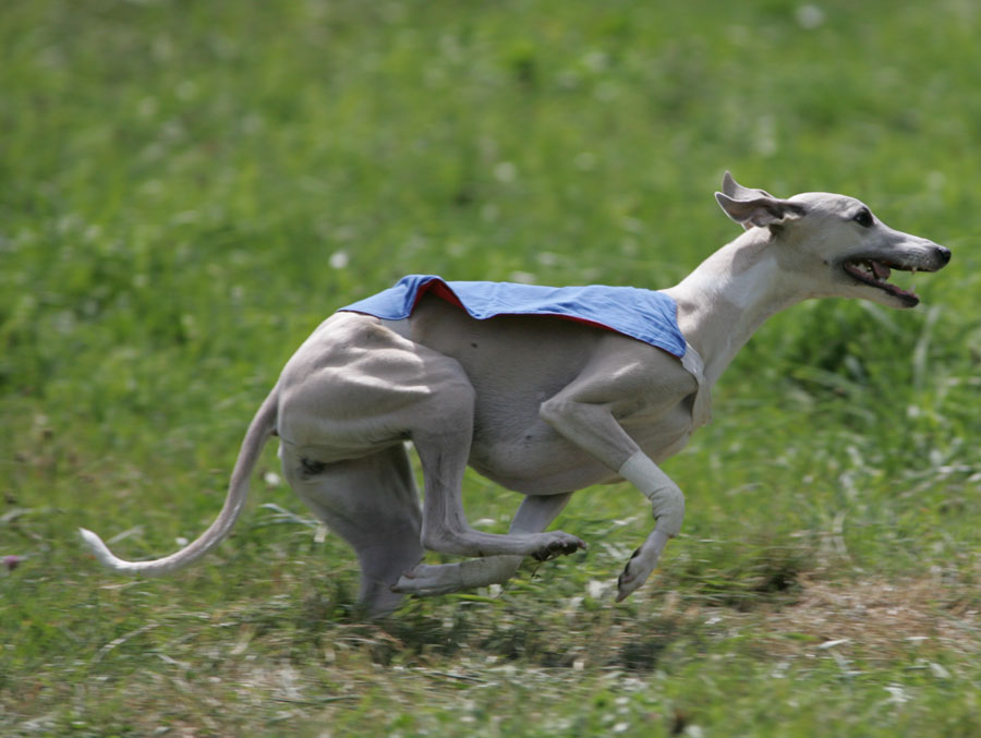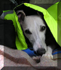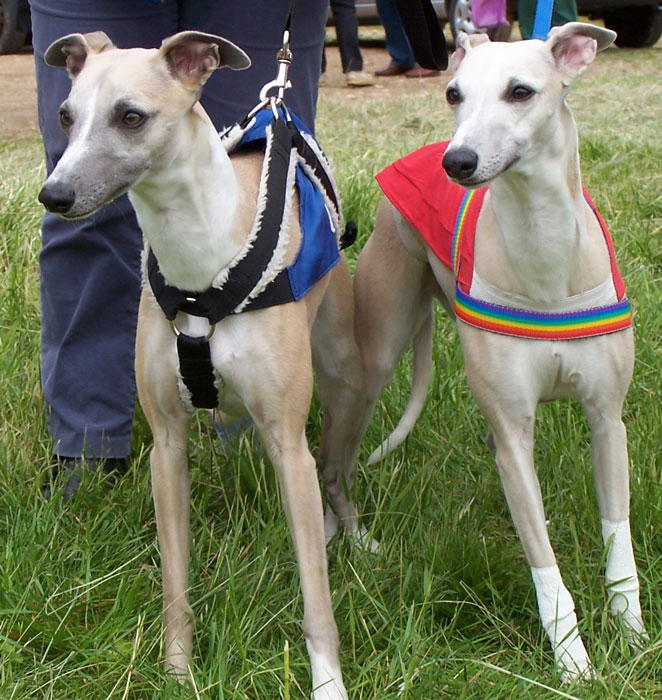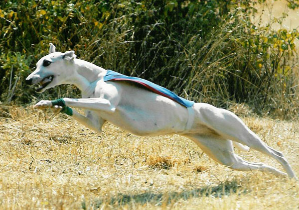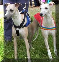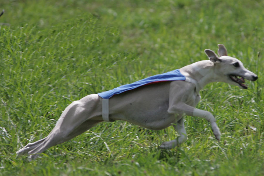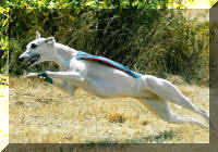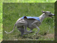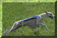 A Aunay sous Crécy : il ne fait pas toujours très chaud au petit matin et Tweety aime son confort... ensuite la course peut commencer : ici avec sa soeur de portée Jacky's smiling Tara King (casaque bleue) que nous avons grand plaisir à rencontrer régulièrement. Les deux soeurs sont de force égale et il est bien difficile de les départager lorsqu'elles courent l'une contre l'autre. A la Nationale d'élevage 2005 sous un soleil de plomb et une atmosphère suffocante (Photo prise par un professionnel) Photos prises au championnat de France de PVL 2005 par un photographe professionnel (le même qu'à la NE du CFW)
