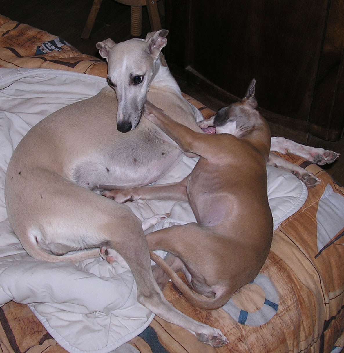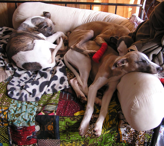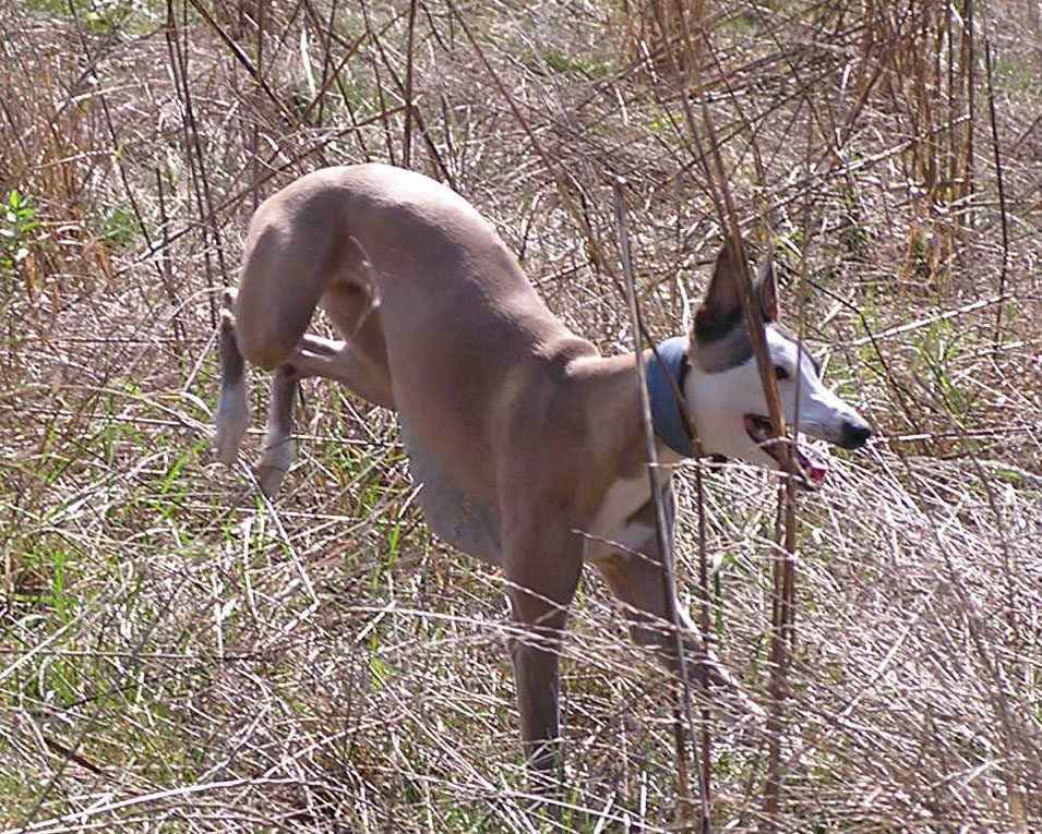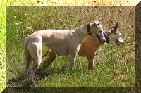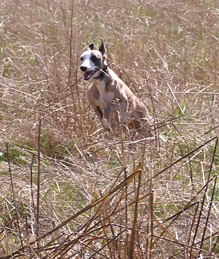 Notre "deux pattes" a décidé qu'il fallait qu'on prenne de l'exercice régulièrement avant de commencer l'entraînement au cynodrome, moi je ne sais pas ce que c'est le cynodrome mais j'aime bien l'entraînement... En gros ça consiste à aller se promener et à courir comme une dératée derrière ma copine Tweety Quelques mois plus tard, je sais maintenant ce que cynodrome veut dire. J'adore la PVL, j'aime moins le racing, c'est pas drôle : le leurre prend le train enfin les deux-pattes essayent de nous faire croire ça, moi je sais que la piste de vitesse n'est qu'un manège pour longs-nez. Par contre, j'aime toujours autant courir comme une folle avec Tweety en balade Je suis maintenant virtuellement sujet recommandé. J'ai fini 3° aux championnats de France de PVL 2006. |